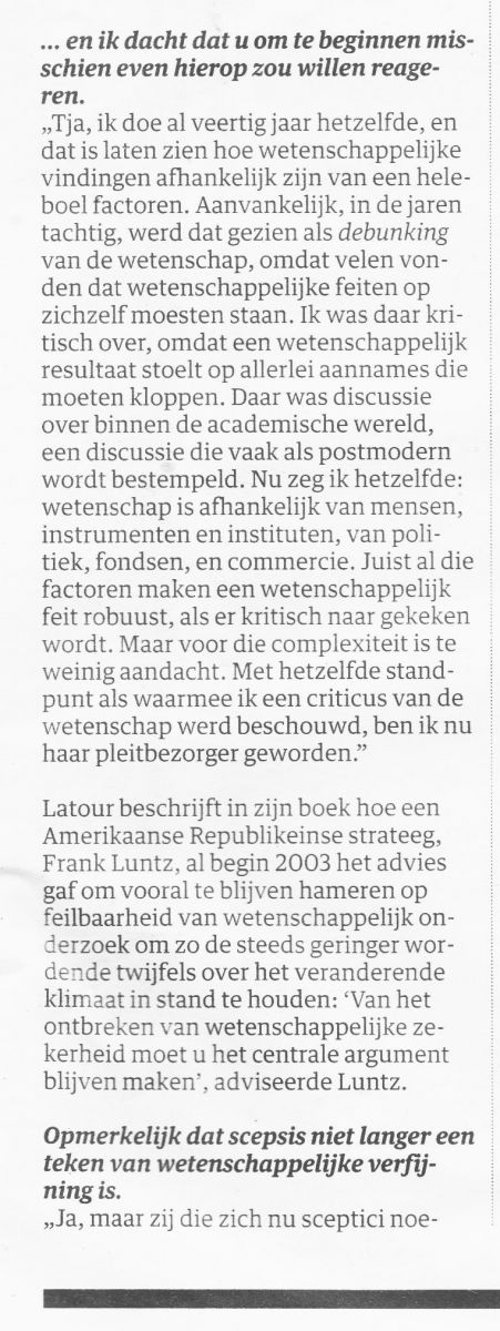 (Interview met Bruno Latour, NRC.)