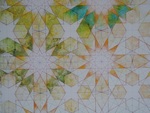 2015Patroon traditionele Hollandsche keukendoek (links) en Islamitisch geometrisch patroon van het traditionele tegelwerk in de Ali Ben Youssef Madrasa, een 16e eeuwse religieuze school uit Marrakech, Marokko (rechts). (Deze foto laat te wensen over en is gemaakt voor het werk af was.)